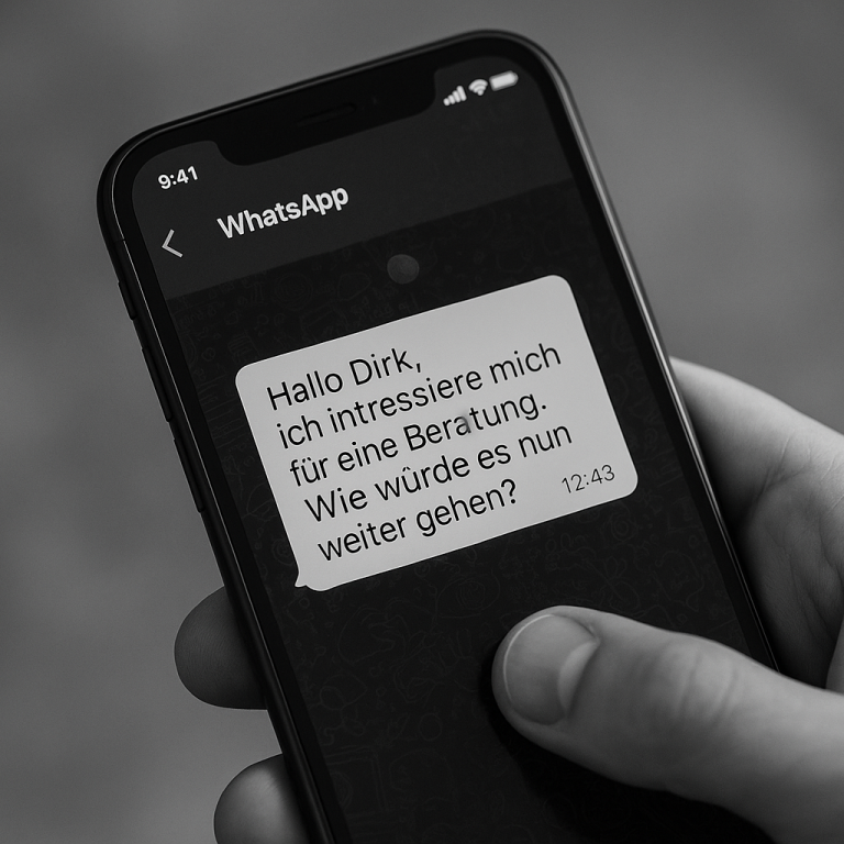 Schreibe mir gerne eine WhatsApp oder eine Mail über das Formular. Wir können kurzfristig einen Termin für ein erstes Telefonat vereinbaren. Oder klingel einfach druch: Jetzt anrufen
